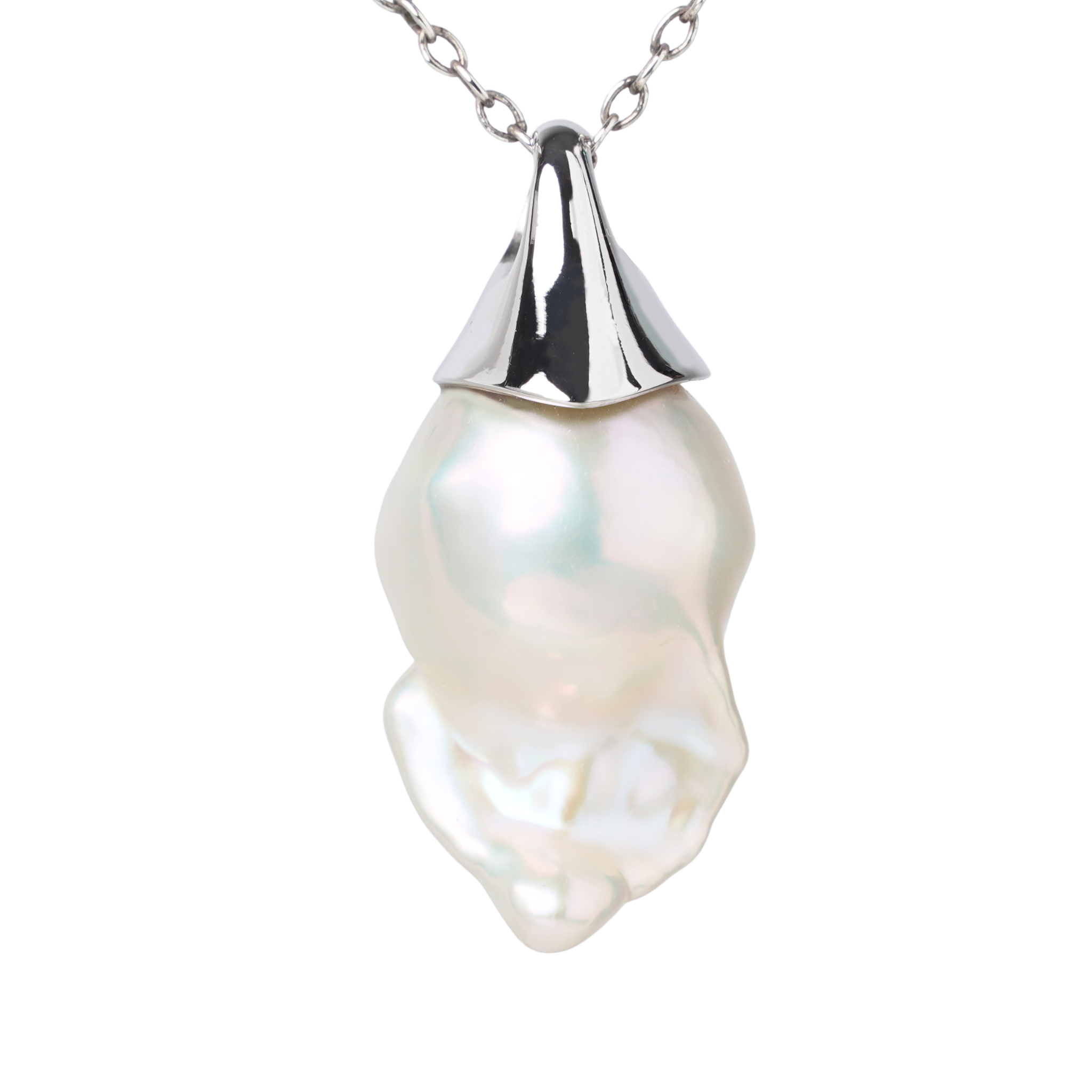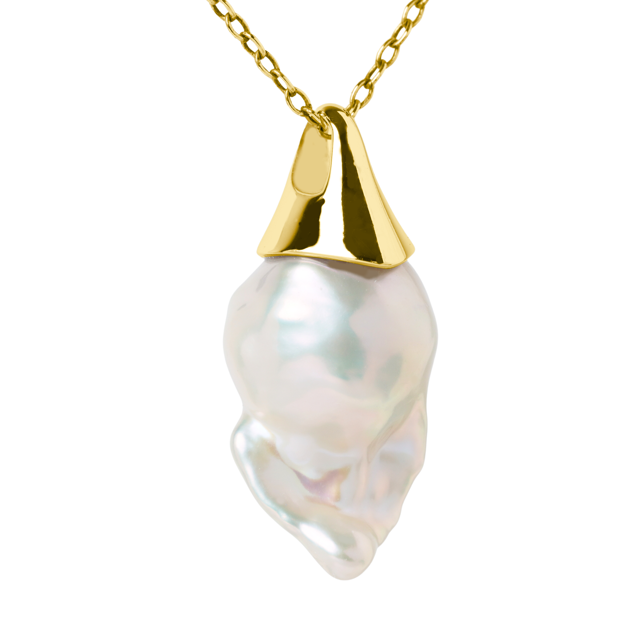 Organic beauty meets refined simplicity. This baroque pearl pendant features a naturally fluid pearl suspended from a fine 45cm trace chain, creating effortless movement with bold yet understated impact. Each pearl is unique in shape, celebrating individuality through soft, sculptural form.