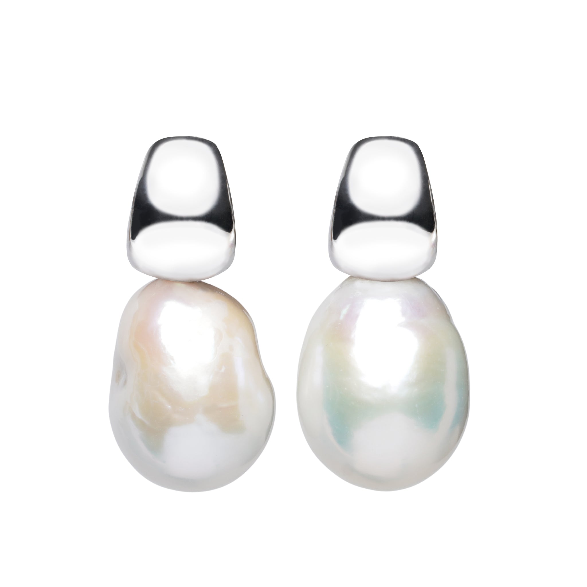 Sculptural, bold and undeniably refined. These oval baroque pearl huggie earrings feature a thick, wide silhouette designed to make a confident statement while maintaining effortless elegance. Each luminous baroque pearl is organically formed, celebrating the beauty of natural imperfection.